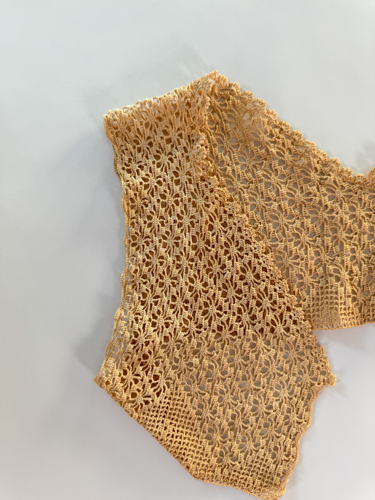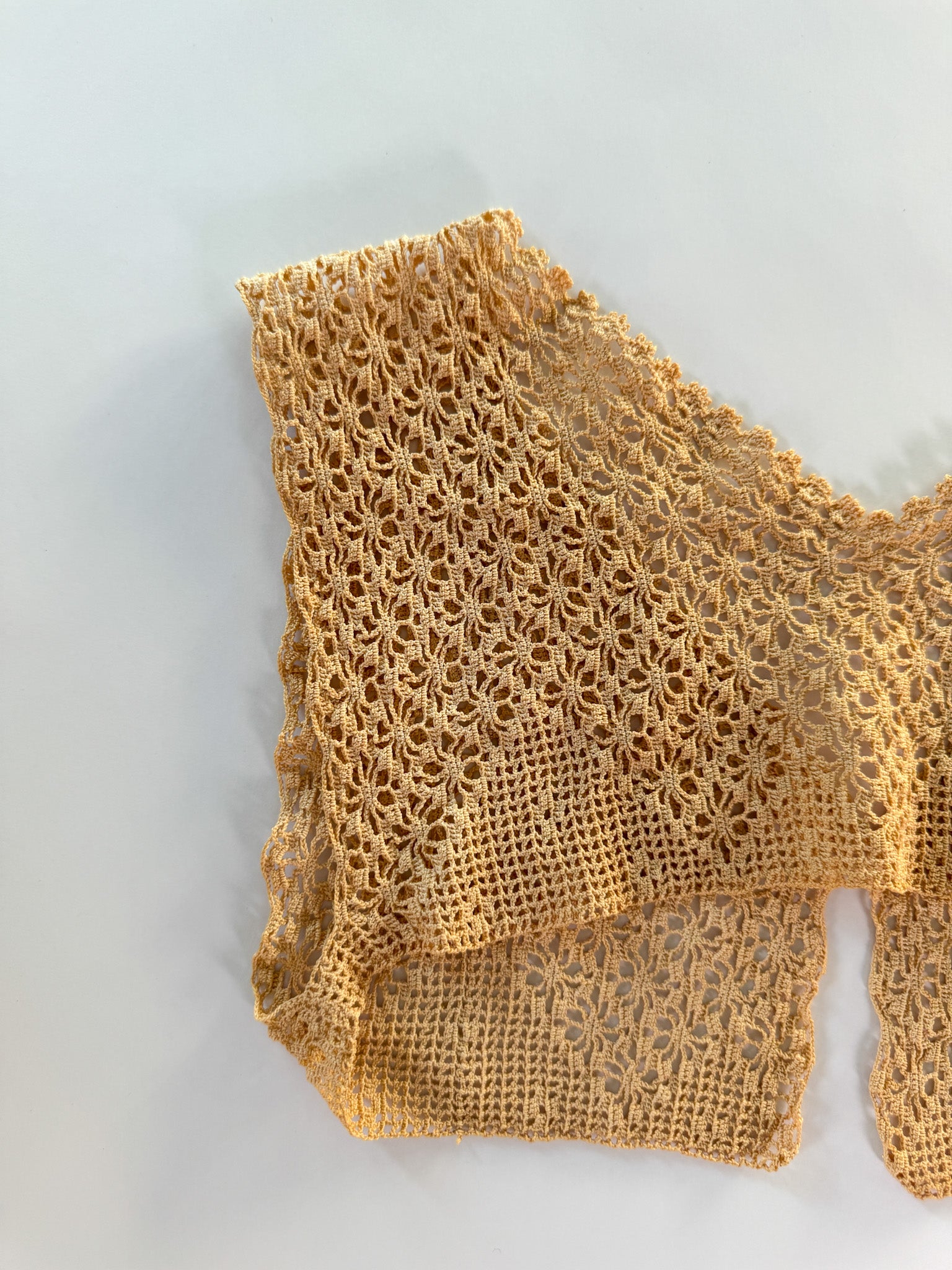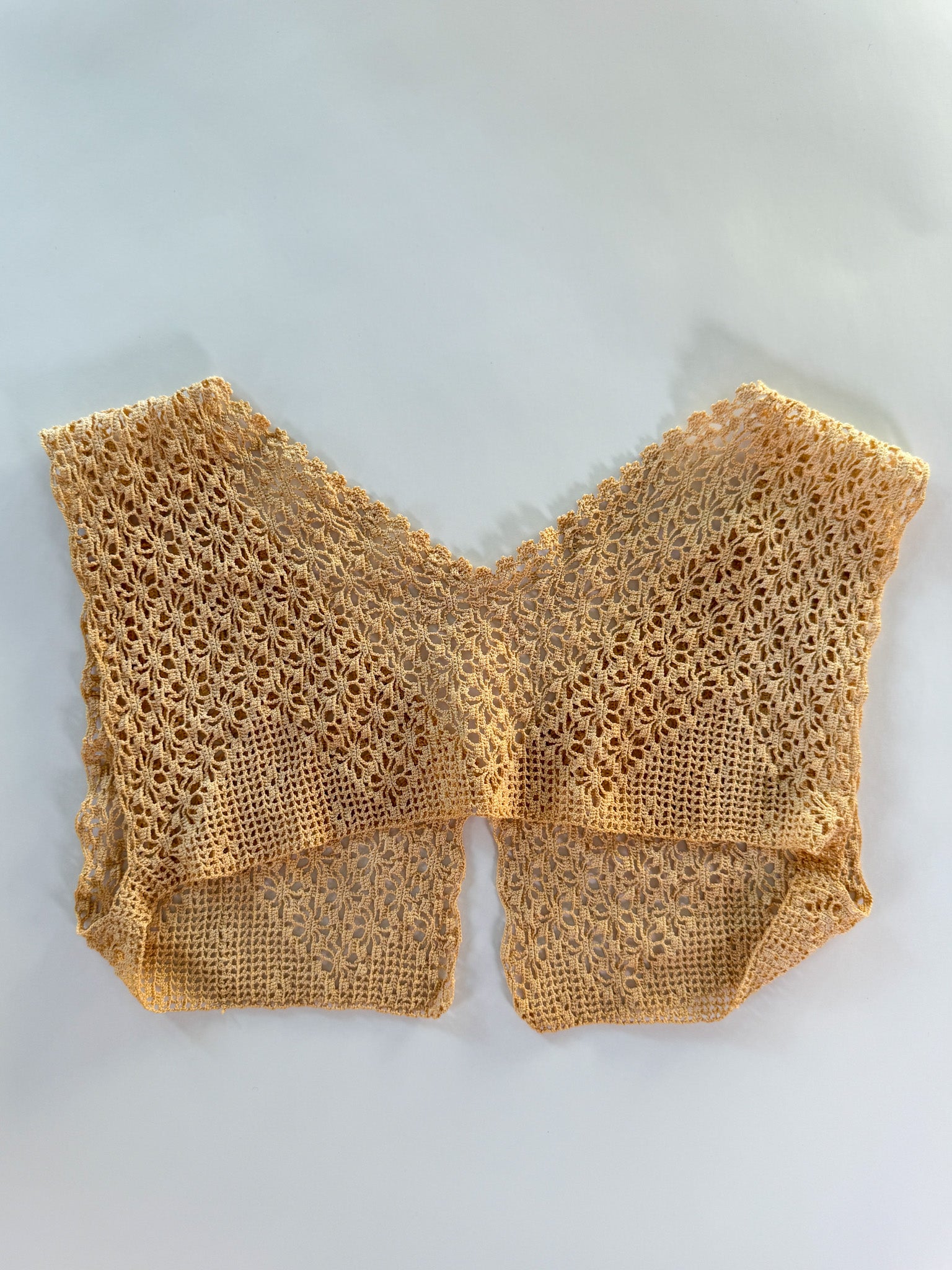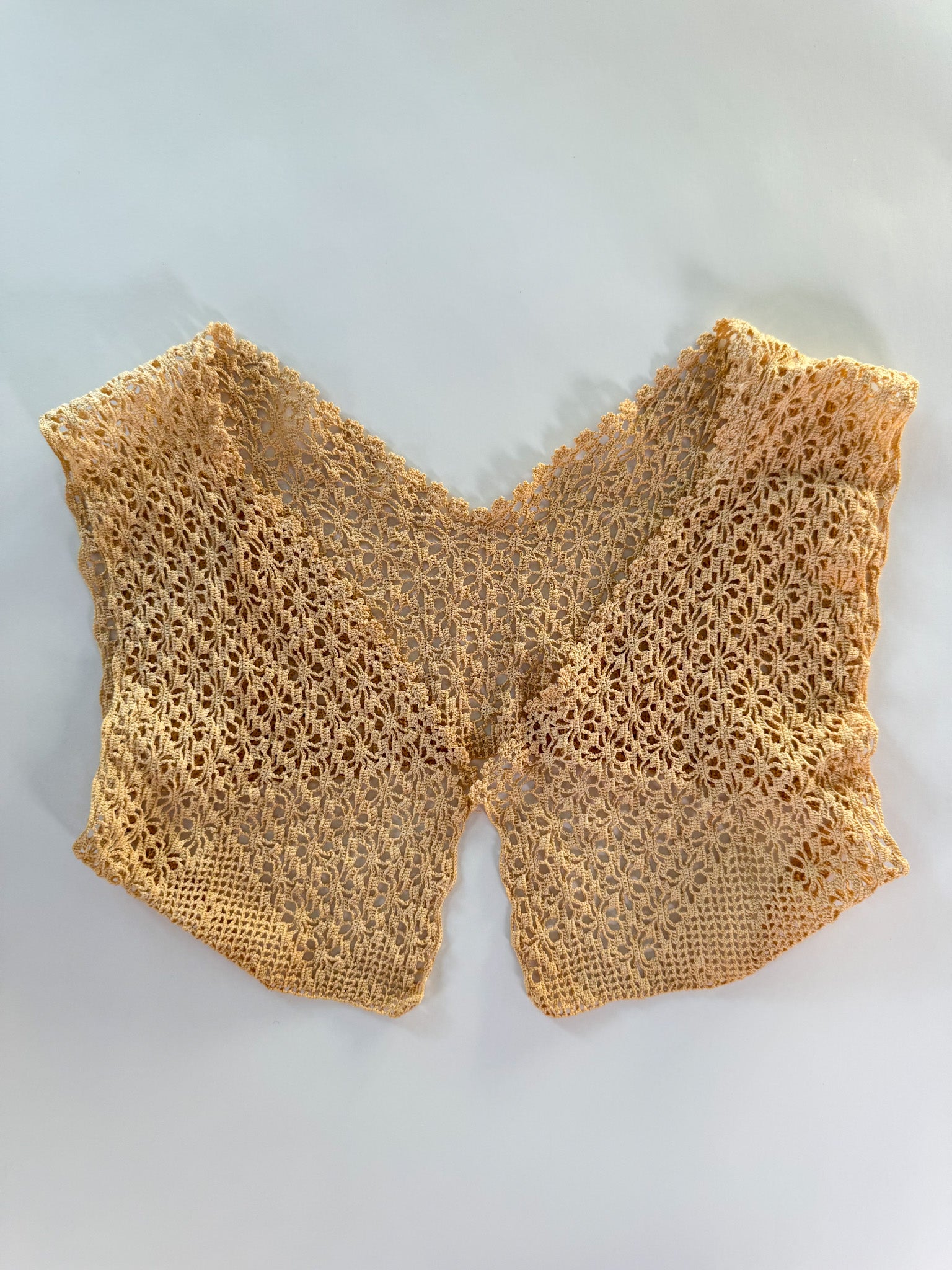 Antique Edwardian crocheted yoke in a light brown color. It could be worn alone over your favorite outfit or sewn to your own chemise, camisole, or corset cover.