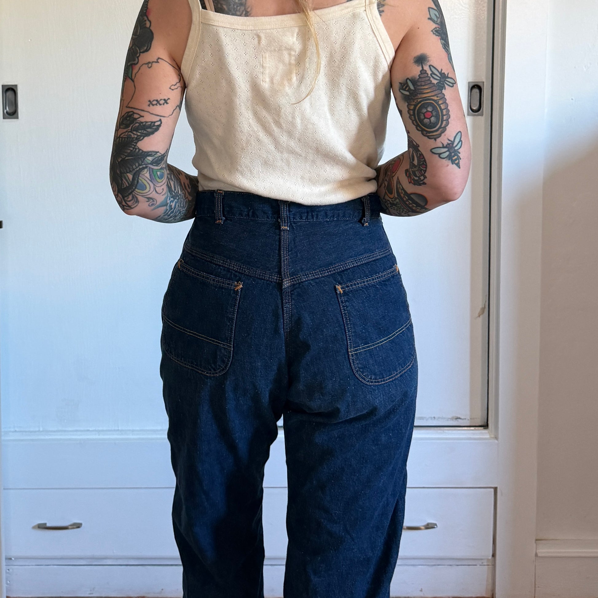 Vintage 1960s Circle S Ranch flannel lined denim jeans. Dark denim and jeans are in good condition. Flaws - stitching has started to come out in the waist.