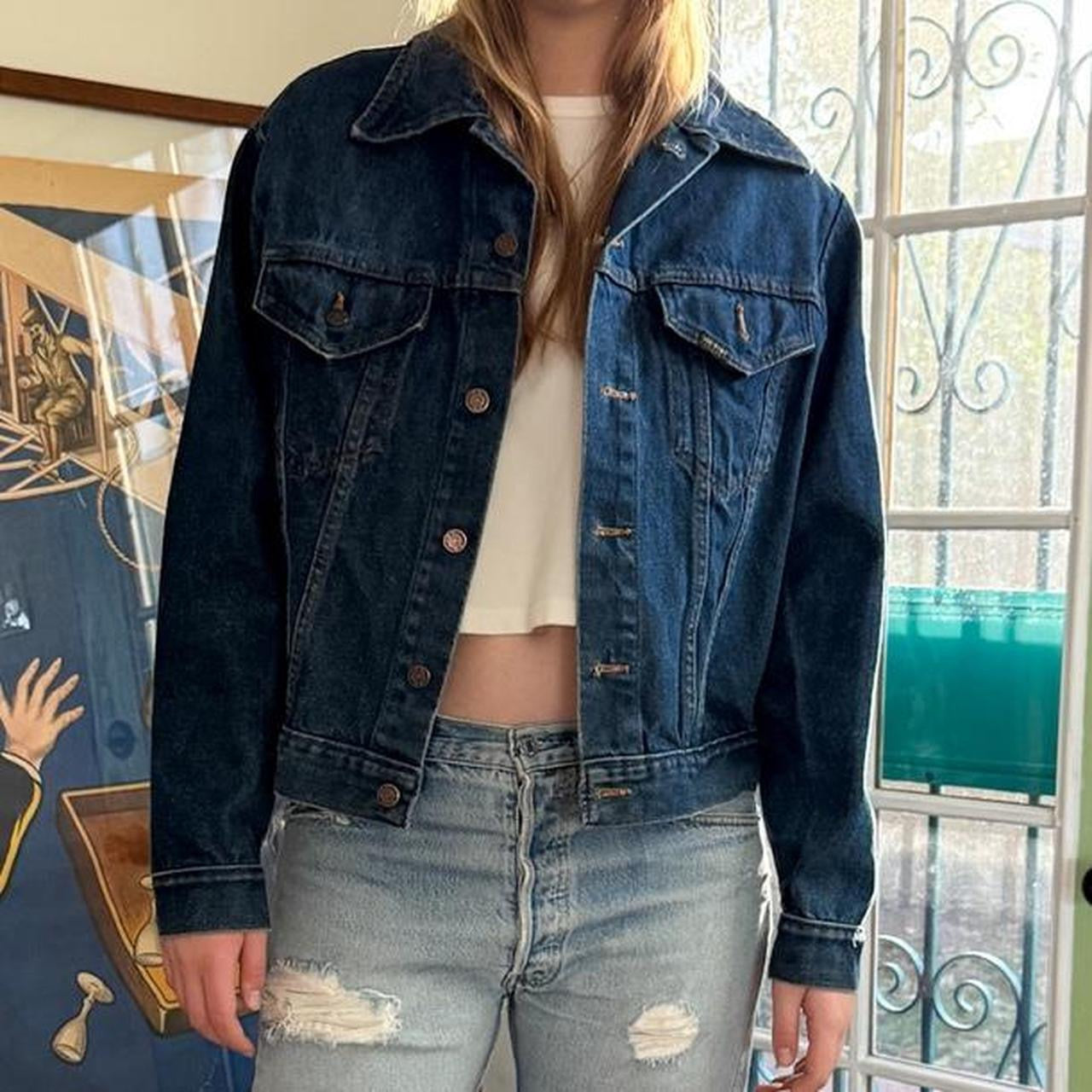 Vintage 1970s 1980s Sears Roebucks Western wear denim jacket. Super dark wash and 100 percent cotton.