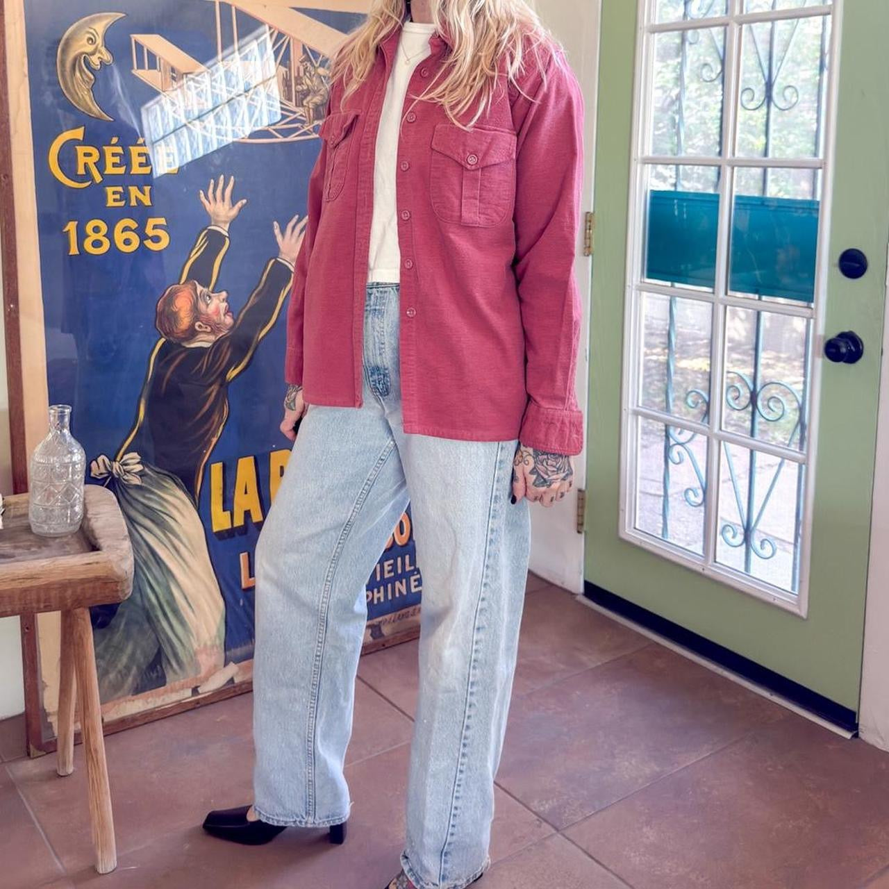 cranberry shirt, chambray, 90s style, cotton top, button-up, casual wear, retro blouse, vintage shirt, Maine apparel